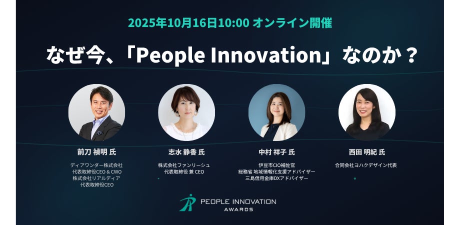 また、募集開始に伴い、アドバイザリーボードの皆様と共に「なぜ今、People Innovationなのか?」をテーマに議論するキックオフイベント(公開実行委員会)を10月16日(木)にオンラインで開催いたします。